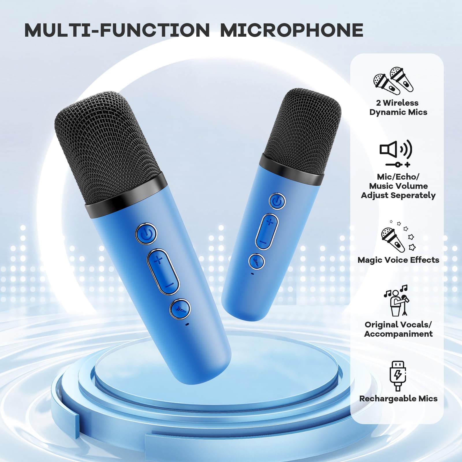 - Super Sound Quality: Portable karaoke machine and 2 wireless microphones are equipped with a high-performance audio driver and an advanced digital signal processor, which make the sound clearer and bring you perfect singing experience