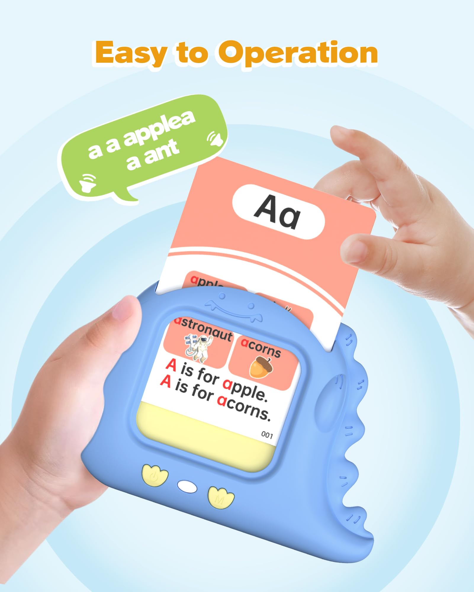 - Rechargeable and Durable: The talking flash cards has a rechargeable battery and USB cable, lasting up to 4 hours on a single charge. It features an auto-off function to save power. Screen-free, it helps reduce screen time and protects toddlers’ eyesight