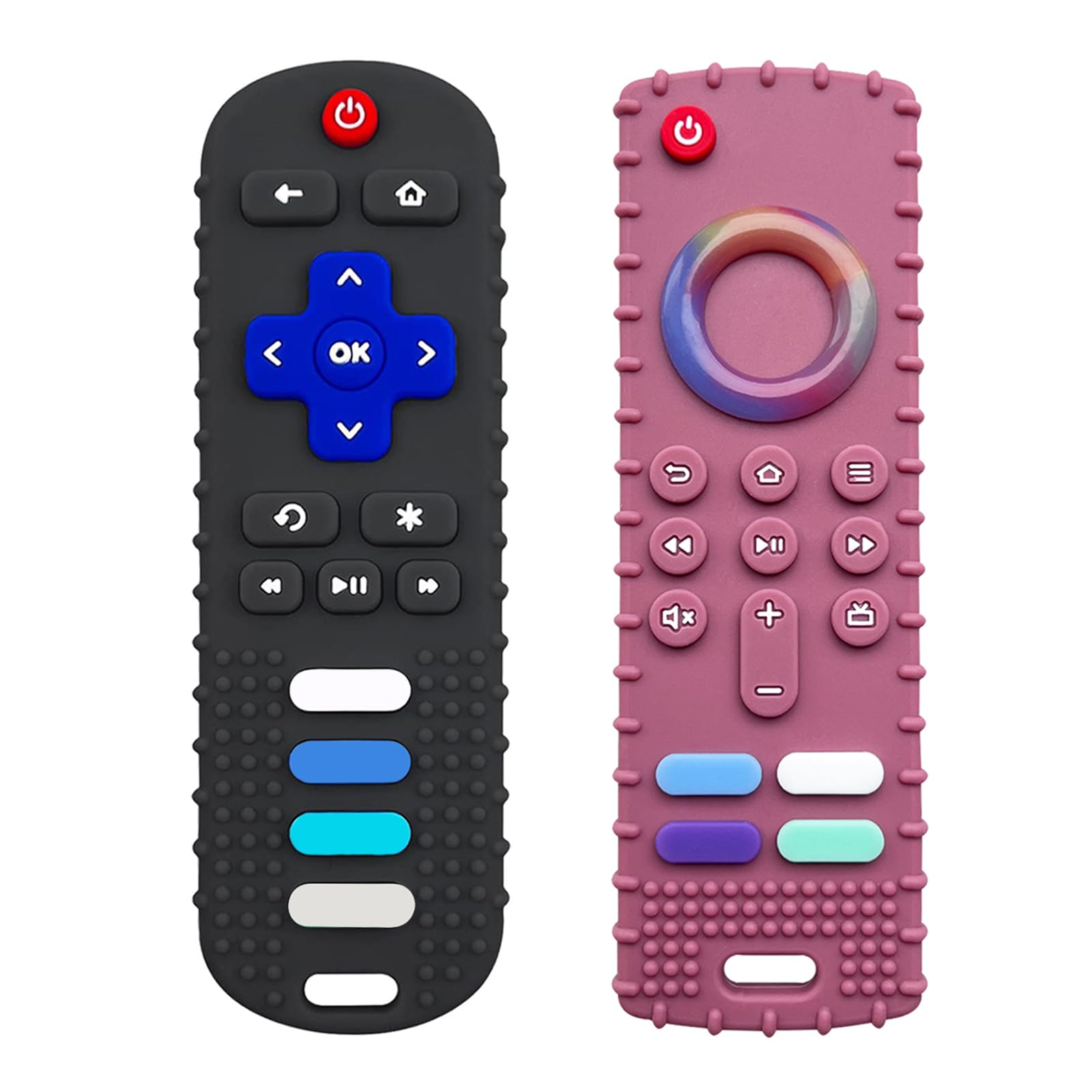 - Sensory Baby Teethers: The remote control shape teething toy features various shapes of bump keys, which can massage the gums, effectively relieve discomfort such as baby's gum itching, exercise the baby's chewing ability and bite ability. Bright, vibrant colors will grab your baby's attention. The graphics on the back can help your baby learn shapes, and it can also be used as candy, chocolate, Ice Cube mold.